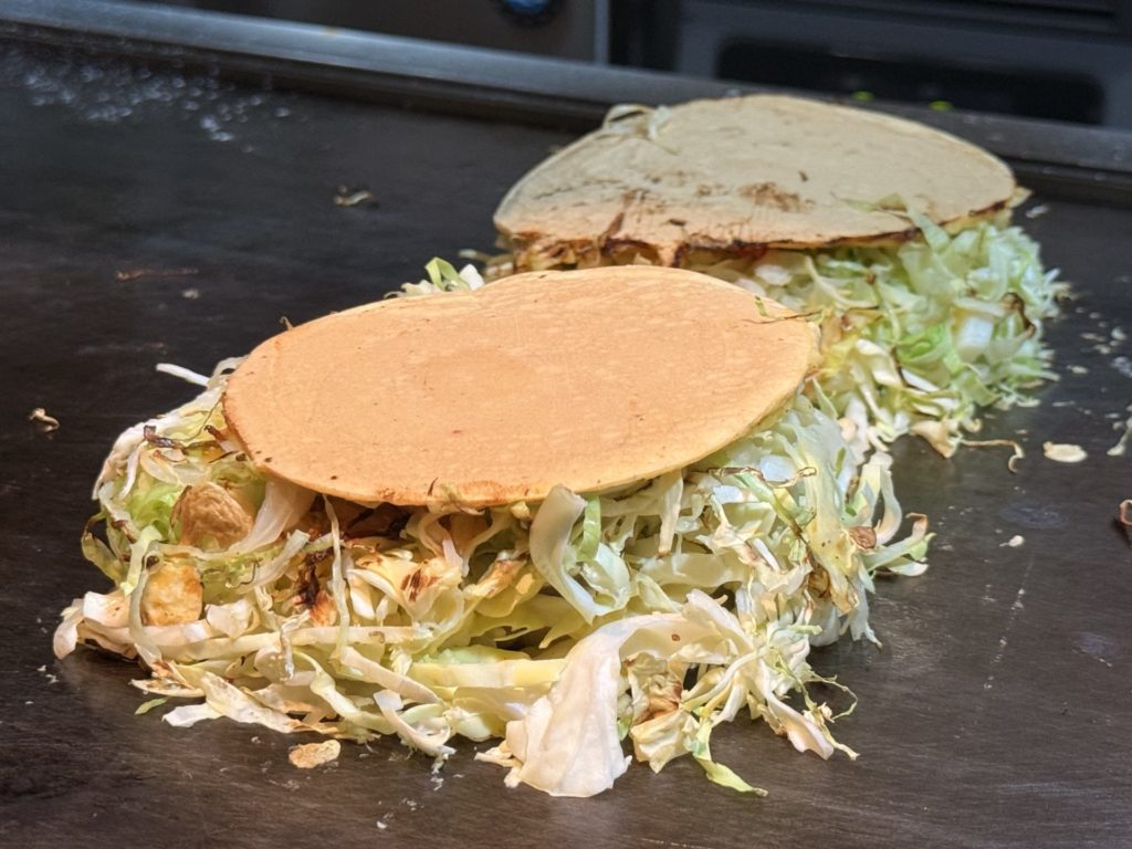 山盛りお好み焼きを食べても